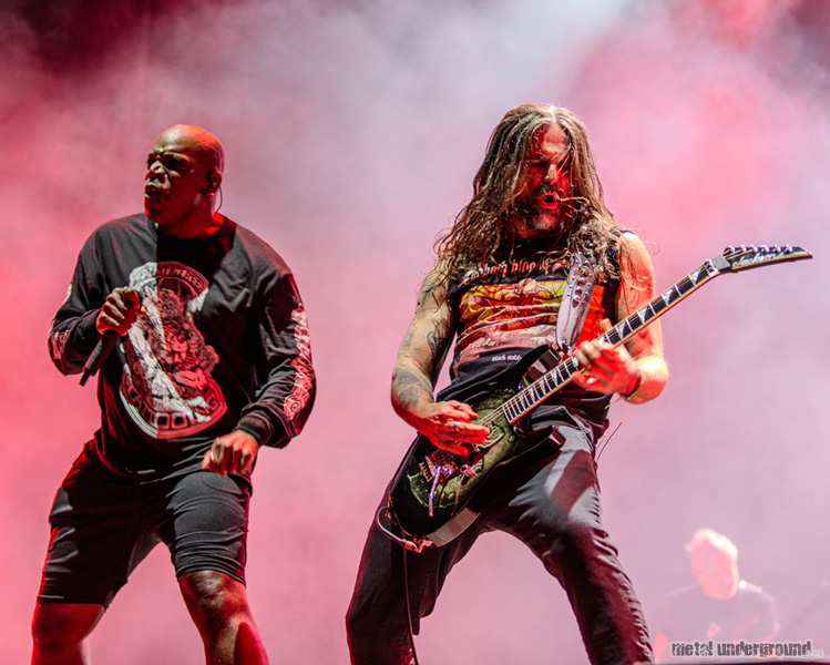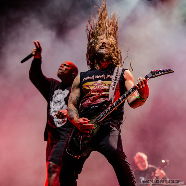 Photos of Mystic Festival's Day 3 in Gdansk, Poland, including Apocalyptica, Blood Fire Death / A Tribute to the music of Bathory and Quorthon, Death Angel, Pentagram (U.S.), Sepultura, and Vader.